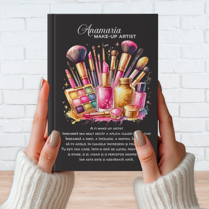 Cu o copertă buretată, personalizată prin print UV, această agendă impresionează prin stil și durabilitate – perfectă pentru zilele pline de clienți, programări și idei de machiaje. Ideală pentru notițe, schițe de look-uri, planuri de conținut sau lista cu produse must-have, este un accesoriu practic și chic pentru orice artist al frumuseții. Personalizeaz-o cu numele make-up artistului și transform-o într-un cadou unic, pe gustul oricărui profesionist din domeniu!