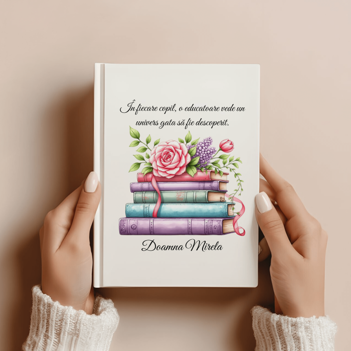 Agendă personalizată albă nedatată - Nume și mesaj - Educatoare