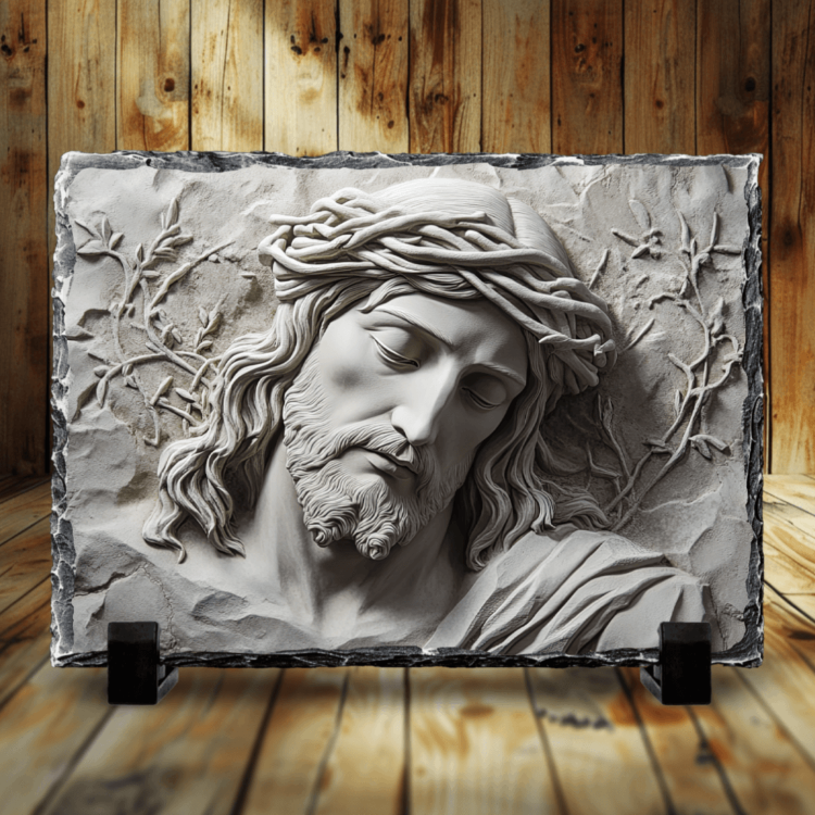 Placă de ardezie - Chipul lui Iisus cu Coroana de Spini