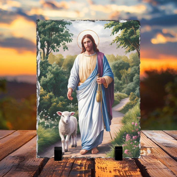 Placă de ardezie - Iisus – Bunul Păstor