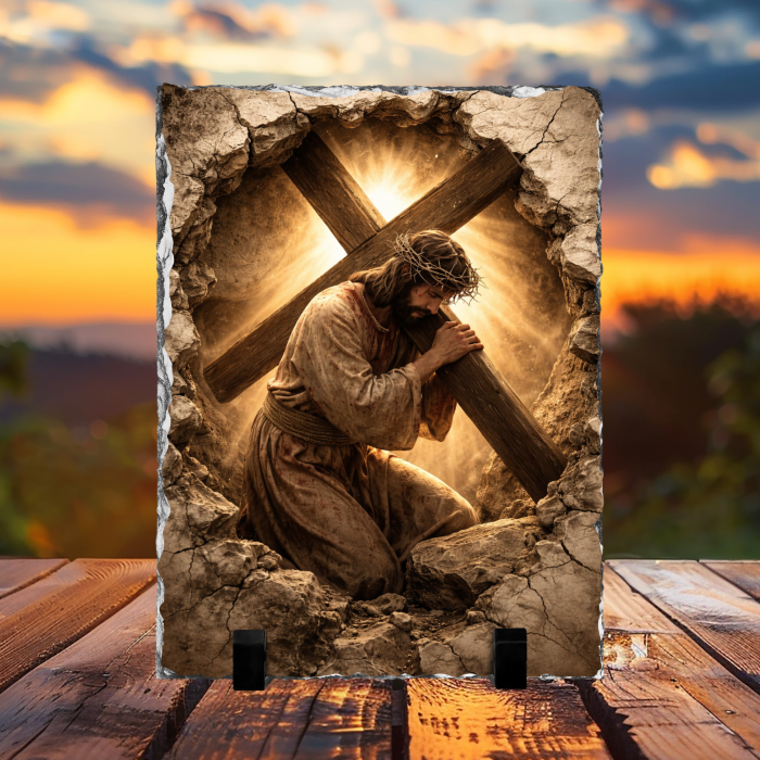 Această placă decorativă din ardezie naturală este realizată prin tehnologia de sublimare, care oferă imagini clare, culori intense și detalii deosebite. Designul religios aduce o notă de spiritualitate și eleganță, transformând această piesă într-un obiect decorativ special pentru orice locuință.
