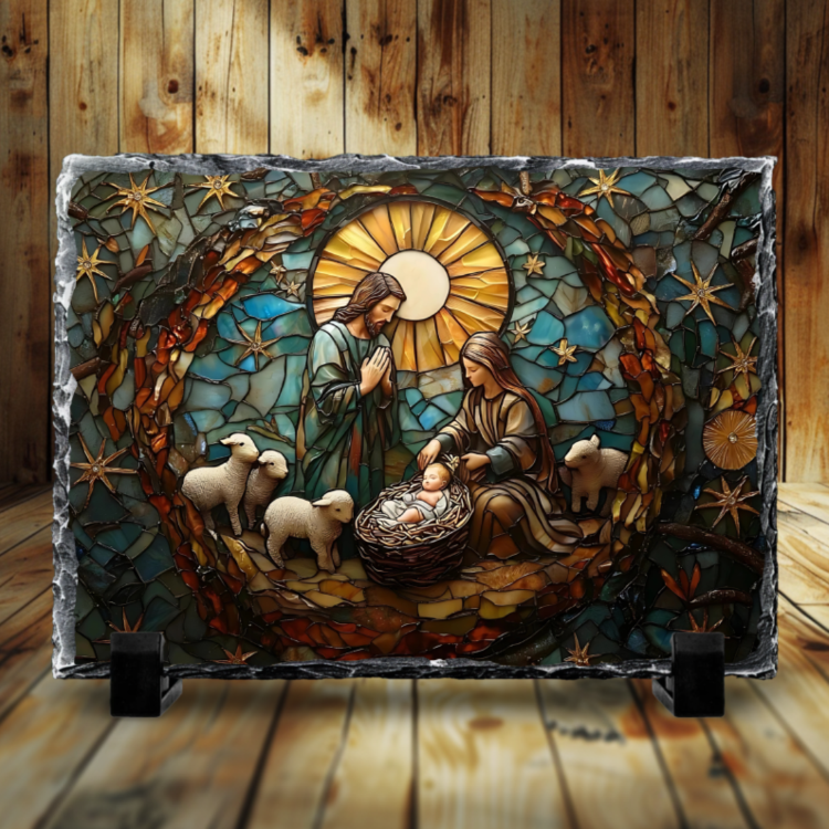 Placă de ardezie - Scena Nașterii Domnului  cu Maria, Iosif și Pruncul Isus