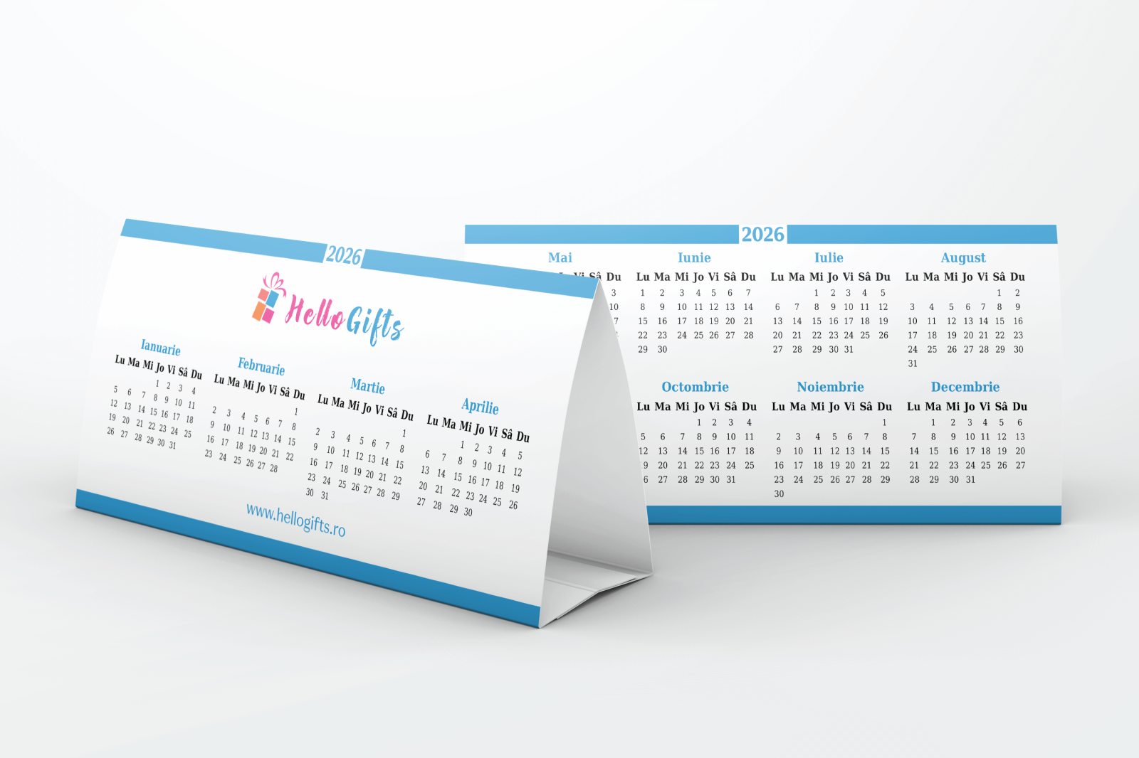 Calendarul de birou personalizat cu logo este ideal pentru birouri, evenimente corporate sau cadouri pentru parteneri și angajați.
