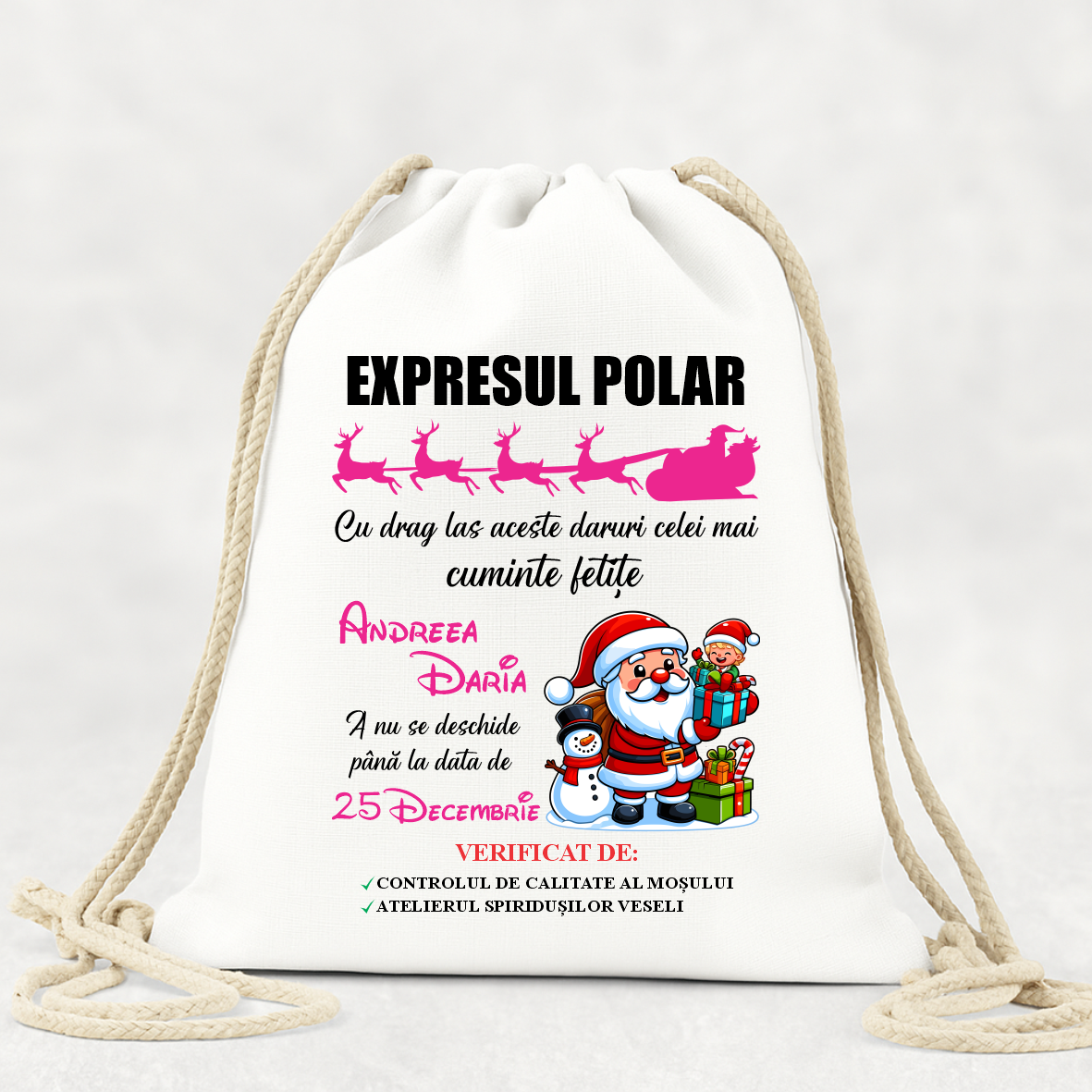 Săculeț textil pentru copii - Crăciun - Expresul polar - Model fetiță