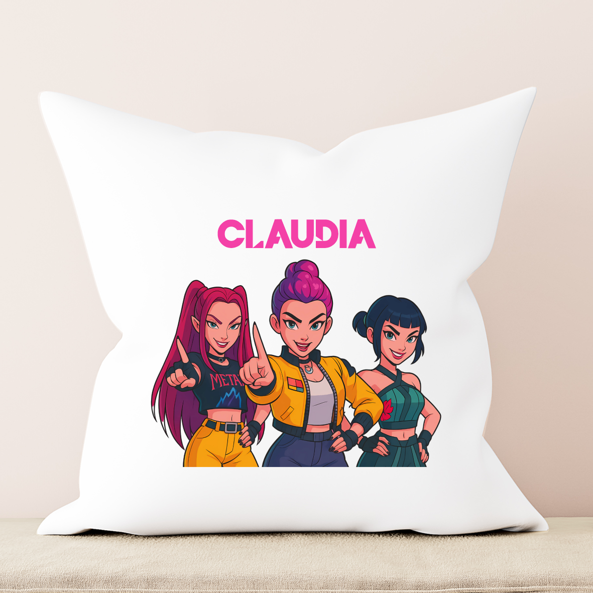 Surprinde-ți copilul cu perna noastră personalizată, inspirată de universul K-pop Demon Hunters! Cu un design colorat și vibrant, această pernă devine companionul perfect pentru joacă, relaxare sau odihnă. Moale, sigură și personalizabilă cu numele copilului, este cadoul ideal pentru fanii micuți ai Demon Hunters, aducând bucurie și originalitate în fiecare zi.