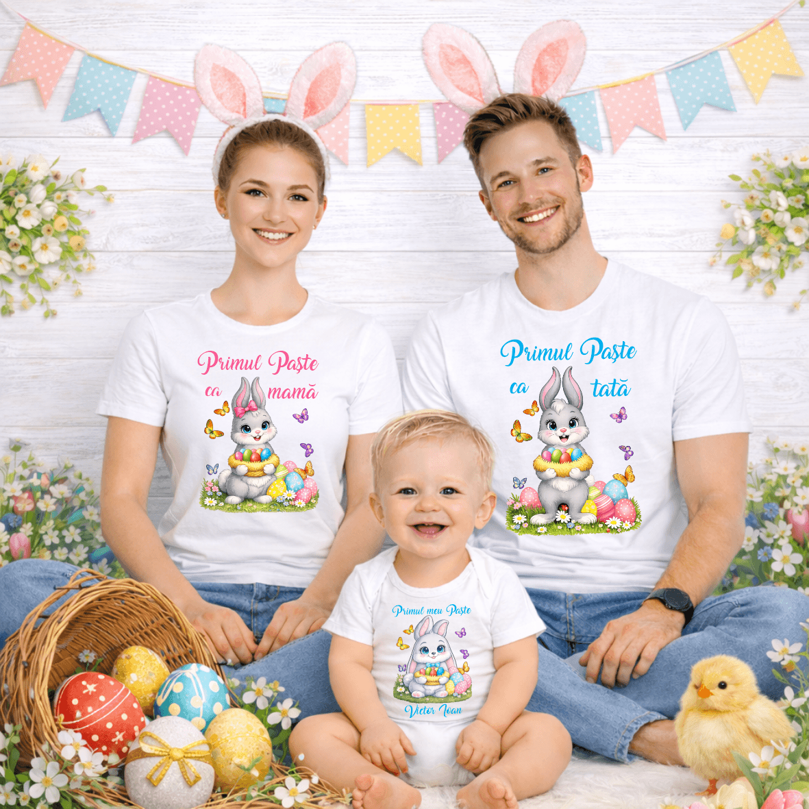 Celebrați spiritul Paștelui într-un mod unic și special cu acest set de tricouri familiale personalizate, care aduc bucurie și culoare în casa și inimile voastre!