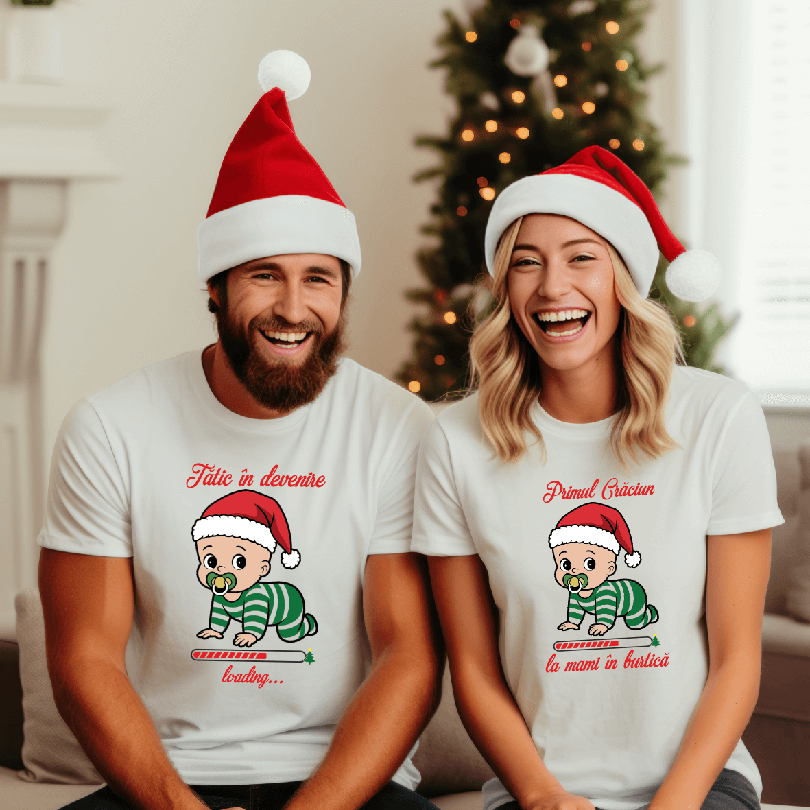 Sezonul sărbătorilor este momentul perfect pentru a celebra bucuria și emoția venirii pe lume a micuțului tău. Cu setul nostru de tricouri personalizate "Tătic - Mamică în Devenire" pentru Crăciun, puteți face ca această perioadă să fie și mai specială pentru voi. Este modul perfect de a împărtăși bucuria cu prietenii și familia. Este un cadou minunat pentru cuplurile aflate în așteptarea unui copil și o modalitate unică de a marca Crăciunul într-un mod special.